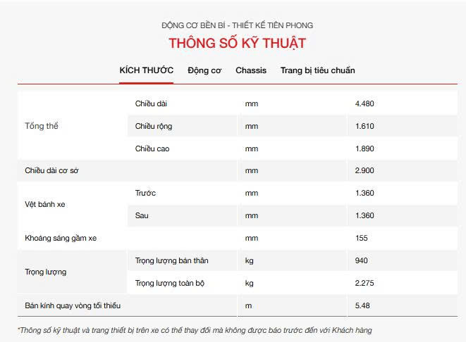 Trang bị động cơ xăng Mitsubishi Tech 4G13S1 công nghệ Nhật Bản, chế độ phun xăng điện tử tiết kiệm nhiên liệu, vận hành êm ái và bền bỉ.
