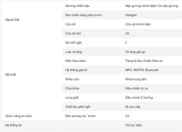 Khoang cabin được thiết kế để tối ưu không gian với khoảng để chân rộng, trần xe cao và thoáng. Ghế bọc nỉ cao cấp, êm ái và dễ vệ sinh. Dây đai an toàn 3 điểm trang bị tiêu chuẩn.