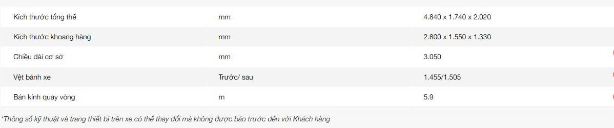 Kích thước tổng thể (DxRxC): 4.840 x 1.740 x 2.020 (mm)