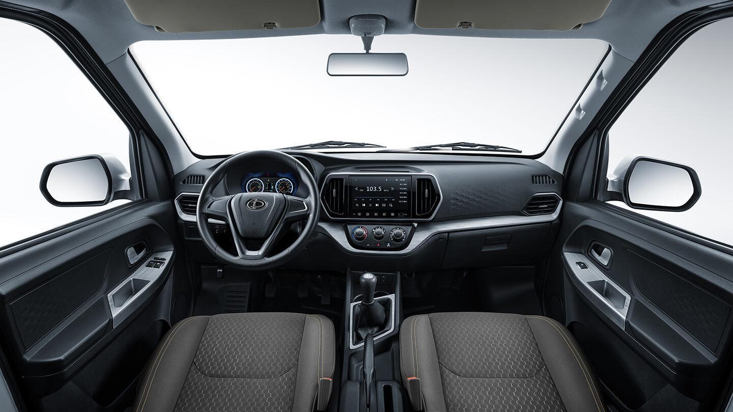 Nội thất sang trọng nổi bật theo phong cách xe du lịch. Trang bị hệ thống điều hòa 2 chiều nóng/lạnh tiêu chuẩn.