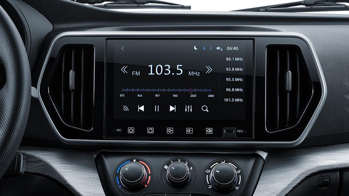 Màn hình giải trí trung tâm 9-inch tích hợp với các tính năng giải trí, được thiết kế liền lạc với taplo, kết hợp camera lùi.