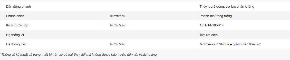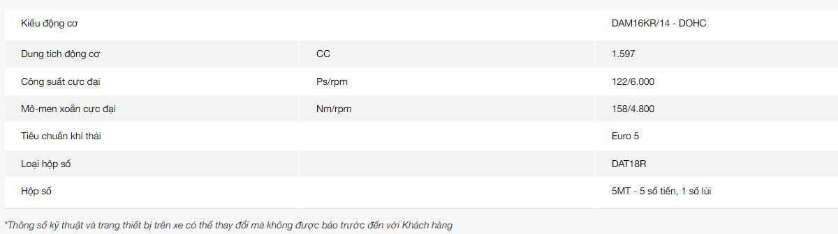 Hộp số sàn 5 cấp (5 tiến 1 lùi) được thiết kế phù hợp với động cơ. Giúp xe vận hành mạnh mẽ và tiết kiệm nhiên liệu.