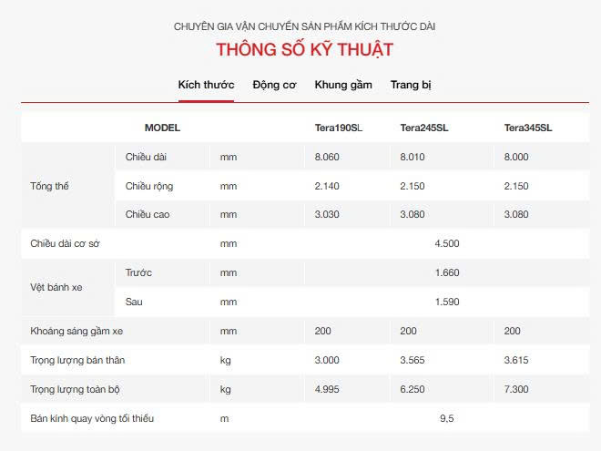 Với mong muốn phục vụ tối ưu mọi nhu cầu vận tải, Teraco mang đến một loạt các dòng xe tải đa dạng, từ những mẫu xe nhỏ linh hoạt cho đến các dòng xe lớn có khả năng chở hàng nặng. Trong đó, dòng xe tải Teraco Tera 345SL thùng kín nổi bật với thiết kế xuất sắc và khả năng vận hành ấn tượng.